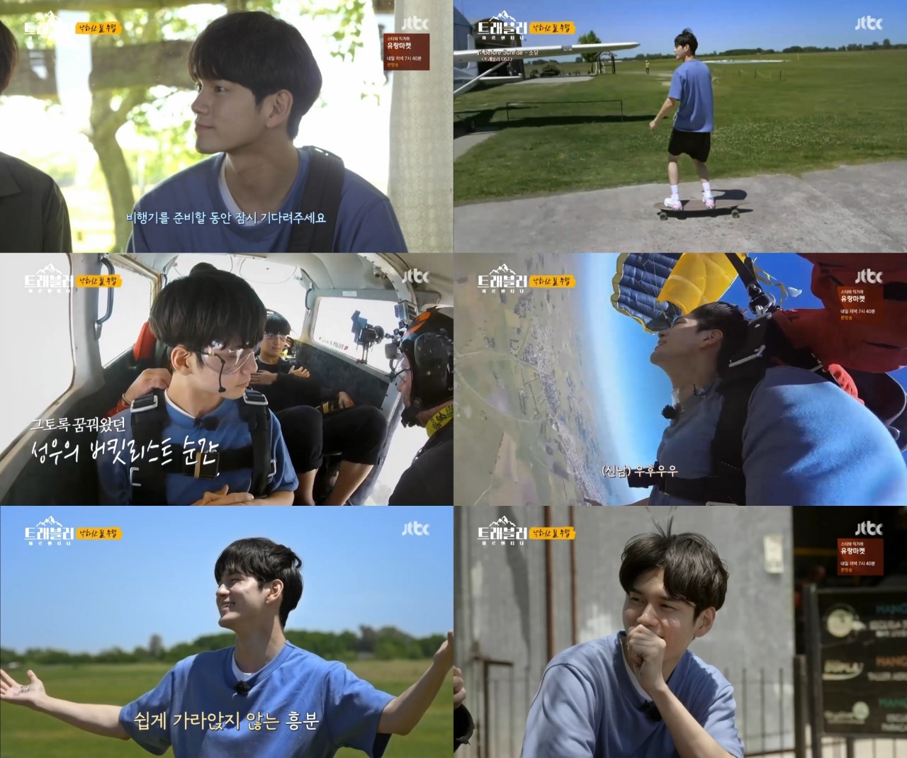 오랫동안 품어온 ‘스카이다이빙’에 대한 꿈을 이룰 수 있게 된 옹성우는 “너무 기대된다 진짜”라며 설레는 마음을 감추지 못했다. 또한 강하늘, 안재홍이 불안함을 보이자 “좋을 거예요 진짜”라고 그들을 안심시켰다.