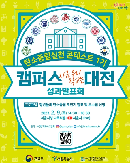 서울시는 9일 14시 30분 서울시청 8층 다목적홀에서 청년 300명과 함께 ‘탄소중립 실천 콘테스트 캠퍼스 대전, 지금 우리학교는’ 행사를 개최한다고 밝혔다.