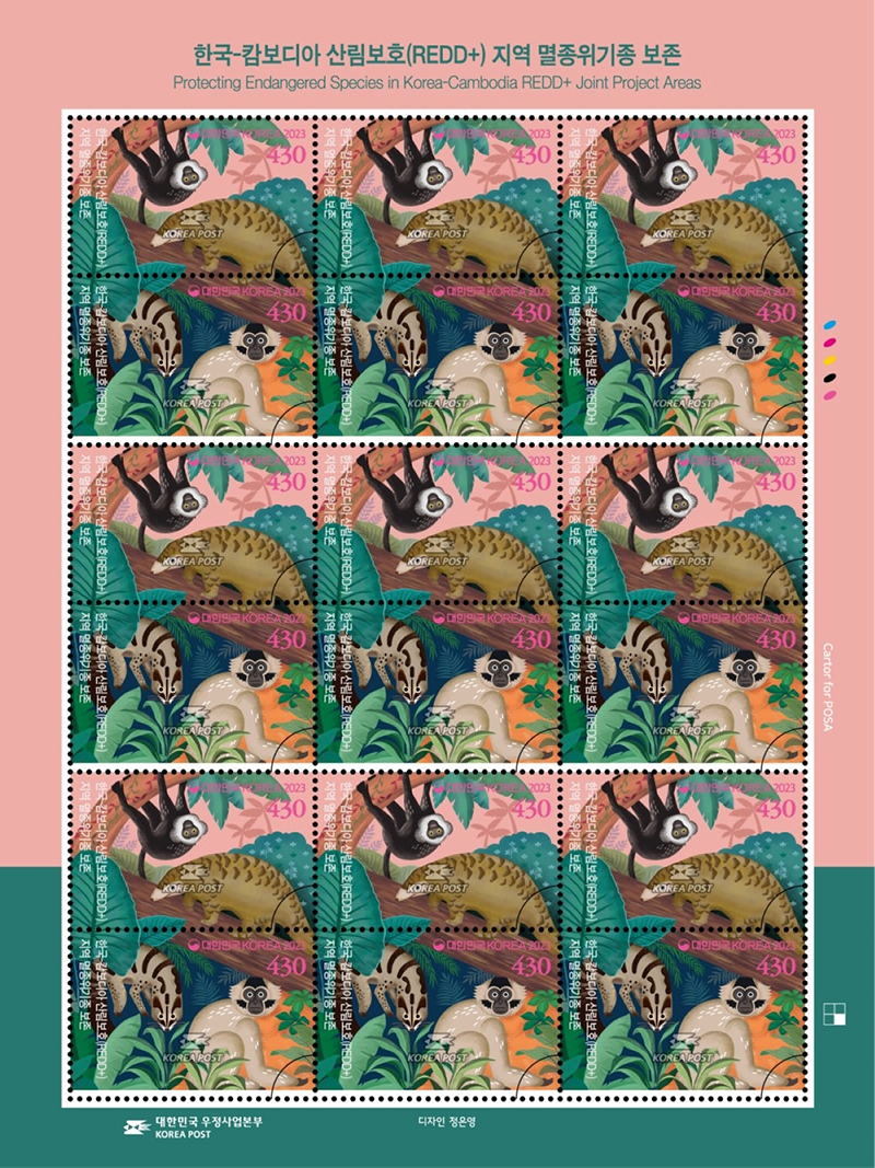 기념우표에는 캄보디아 캄풍톰주 레드플러스 사업을 통해 보호한 말레이천산갑(Manis javanica), 오스톤사향고양이(Chrotogale owstoni), 인도차이나원숭이(Trachypithecus germaini), 그리고 보닛긴팔원숭이(Hylobates pileatus) 등 4종이 소개된다.