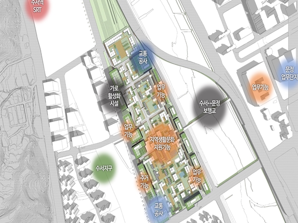 아울러, 수서차량기지는 SRT, GTX-A 등 광역교통이 집결되어 수도권 및 전국과 연계되는 관문 역할을 할 수 있는 풍부한 개발 잠재력을 가지고 있는 곳으로, 입체복합 개발시 동부간선도로 및 자곡로와 직접 연결하여 지역간 연계 기능을 원활히 하고, 동서 및 남북간 단절되어 있는 녹지 생태축과 도시축을 연결하여, 광역 환승 거점인 수서역 일대를 명실상부한 중심지로 완성할 계획이다.
