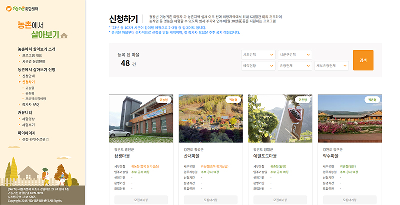 운영마을의 기본정보, 프로그램 내용, 모집인원 등 세부사항은 귀농귀촌종합센터 누리집에서 확인할 수 있다.