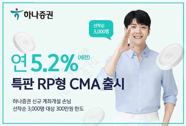 하나증권은 세전 연 5.2%의 수익률이 적용되는 온라인 전용 특판 CMA(RP형)를 출시했다고 15일 밝혔다.