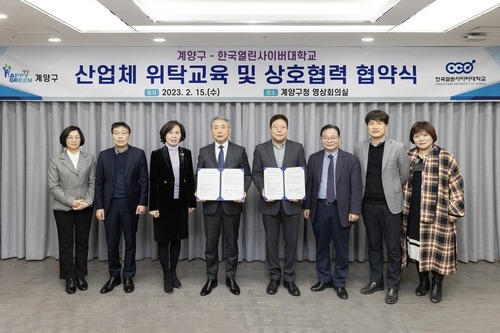 협약식은 윤환 계양구청장, 장일홍 한국열린사이버대학교총장, 문미혜 계양구의회 의원(기획주민복지위원장) 등이 참석한 가운데 진행됐으며, 이번 협약을 통해 계양구민과 구청 소속 직원이 한국열린사이버대학에 입학할 경우 입학금 면제와 매 학기 수업료의 일부 감면을 받을 수 있게 됐다.
