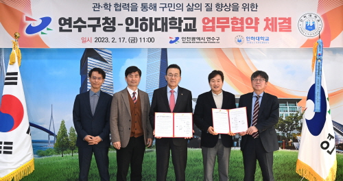 인천 연수구는 지난 17일 구청 소회의실에서 지속 가능한 관·학 협력을 통해 구민의 삶의 질 향상을 목적으로 인하대학교와 업무협약을 체결했다.