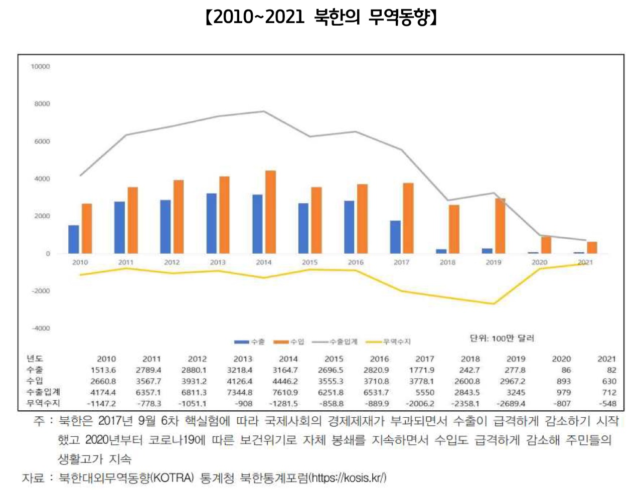 북한은 경제구조의 한계와 불확실성 확대에 핵·미사일 실험이란 막다른 선택으로 맞서고 있다. 북한에 대한 국제제재의 장기화로 외화획득 차단과 생산시설의 낙후 그리고 코로나19에 따른 국경봉쇄는 경제적 하방리스크를 심화시키고 있다. 중국과 교역 재개를 논의하고 있으나 보건 위기로 지연되고 있으며, 교역이 재개되어도 대중 무역만으로는 회복이 어렵고 오히려 장기적으로 국가기능과 시장기능이 동시에 마비되는 ‘퍼펙트 스톰’에 대비해야 할 상황이다.