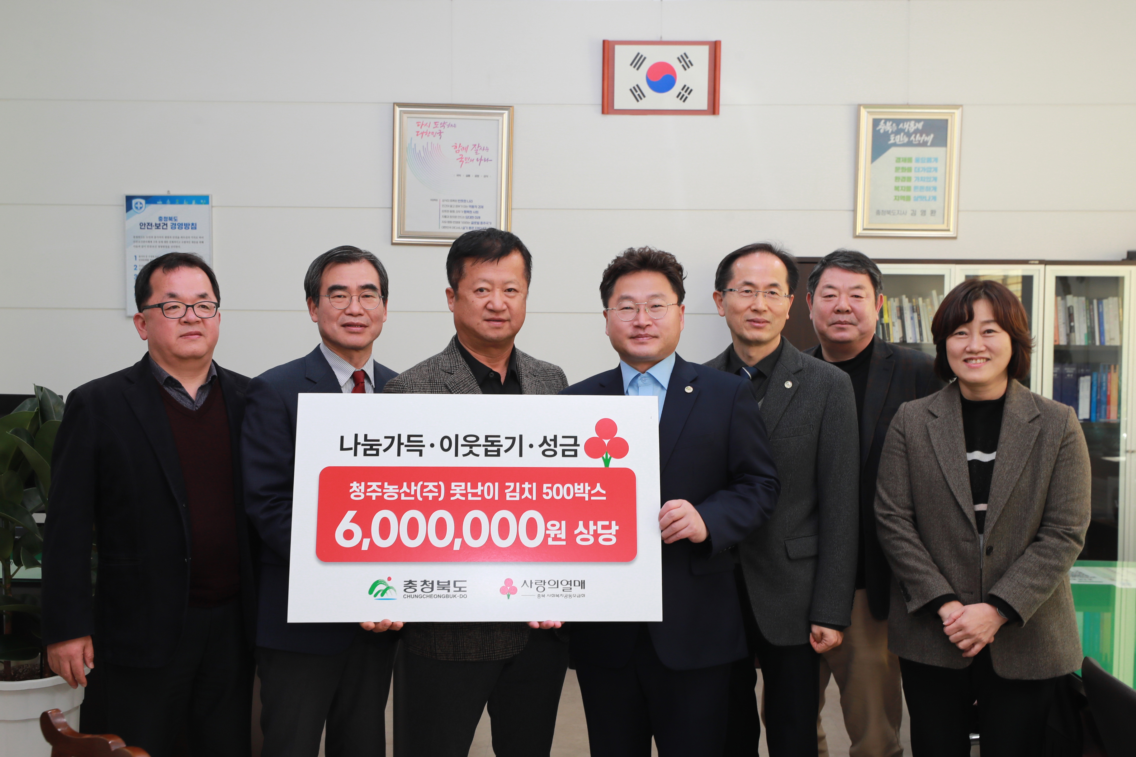 이제승 농정국장은 “코로나19로 기업경영이 어려운 상황에서도 농업?농촌 취약계층을 위해 선뜻 나서 준 김공배 대표께 감사드리며, 못난이 김치 사랑의 기부운동이 우리 충북을 더 신나고 새롭게 하는 도화선이 되길 바란다”라고 말했다.