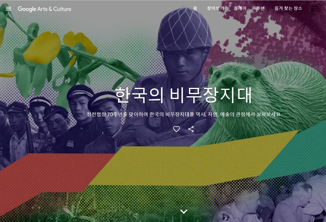 국가보훈처와 구글은 6·25전쟁 정전 70주년을 맞아 관련 역사와 DMZ 자연 등을 5000여개의 콘텐츠로 소개하는 ‘한국의 비무장지대(Korea's Demilitarized Zone)’ 온라인 전시물을 22일 전 세계에 공개한다고 밝혔다.