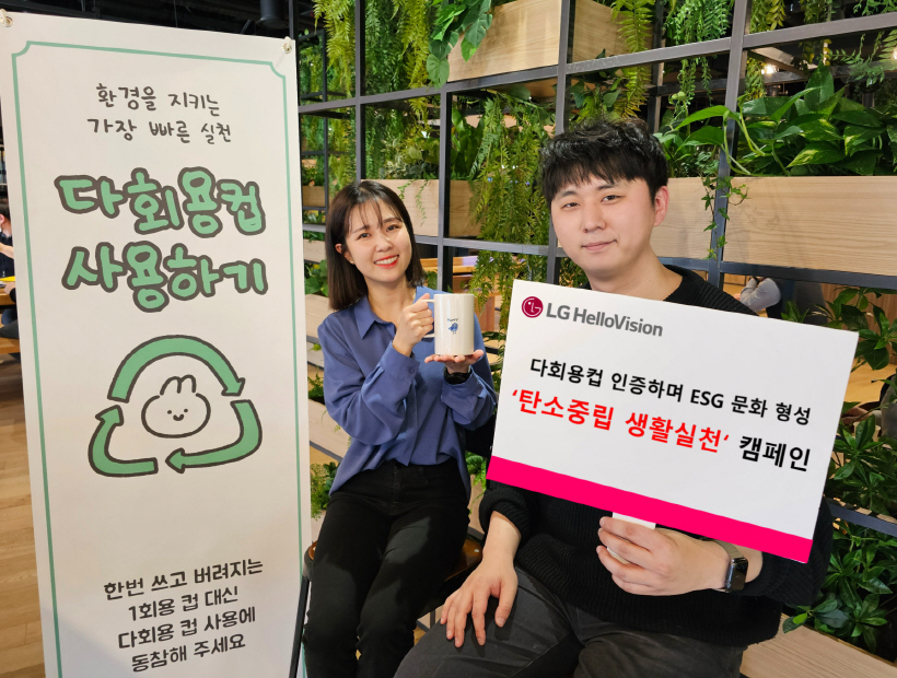 LG헬로비전은 임직원의 적극적인 참여를 이끌기 위해 인증샷 이벤트를 마련했다. 이벤트에 참여한 200여명의 임직원들은 자신만의 방식으로 다회용컵을 활용했다. 출근길 카페 음료를 텀블러에 담아 오거나, 사내 커피머신에서 머그컵을 사용하는 등 다양한 다회용컵 사용 방법을 공유했다. 임직원들의 수많은 인증에 따라 LG헬로비전도 참여 임직원 한 명당 1만원을 매칭, 서울 상암동에 위치한 노을공원 나무심기 활동에 기부한다.