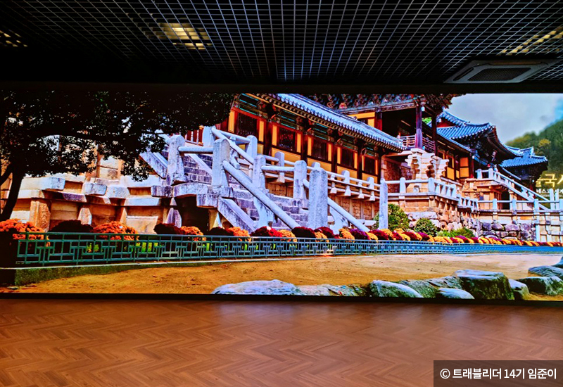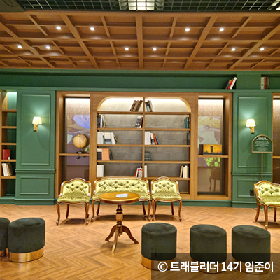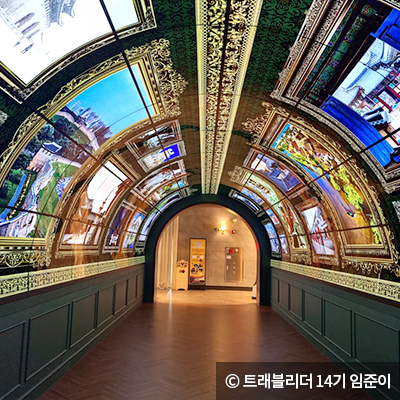 살롱헤리티지는 세계유산 미디어 홍보관입니다. 대형 LED 화면을 통해 세계유산제도의 기원을 보여주는 ‘헤리티지 유니버스’와 경주의 아름다운 세계유산들을 영상에 담은 ‘세계유산도시 경주’를 볼 수 있는데요. 그 밖에도 화려한 빛이 쏟아지는 미디어 터널과 18세기 대화와 교류의 장이었던 유럽의 ‘살롱’을 모티브로 한 서재가 있어 여러 나라의 세계유산을 살펴볼 수 있습니다.
