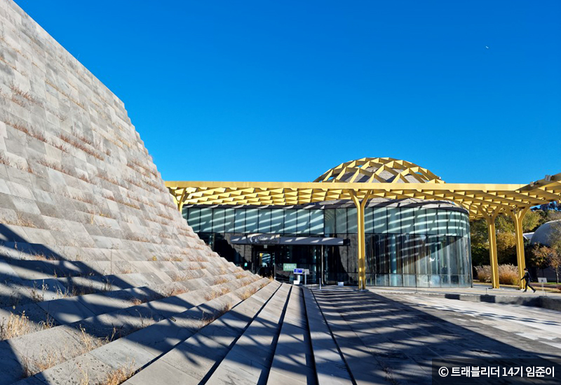 경주 세계문화엑스포 기념관은 경주엑스포의 20년 역사를 한눈에 볼 수 있는 전시관입니다. 건축가 쿠마 켄고가 설계한 건축물로 경주의 주상절리를 형상화한 비탈면과 대릉원을 모티브로 한 돔이 인상적인 곳인데요.