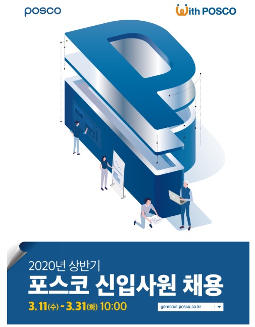 포스코그룹이 11일부터 2020년도 상반기 신입사원 채용을 시작한다. 모집하는 그룹사는 포스코, 포스코인터내셔널, 포스코건설, 포스코케미칼 등 4개사다.