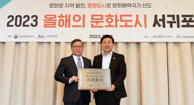 전병극 문화체육관광부 제1차관은 서귀포시에 ‘2023 올해의 문화도시’ 현판을 수여했다.