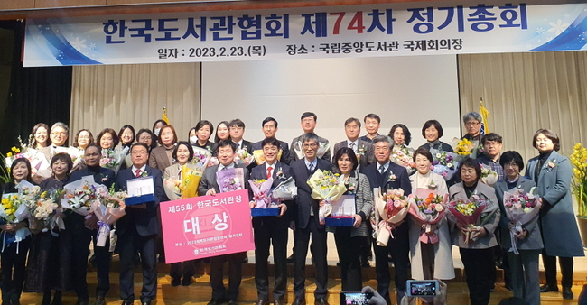 구미도서관은 한국도서관협회가 주관한 ‘ 제 55 회 한국도서관상 ’ 단체상 부문 수상기관으로 선정돼 2 월 23 일 오후 서울 서초동 국립중앙도서관 국제회의장에서 열린 시상식에서 상패와 현판을 받았다 .
