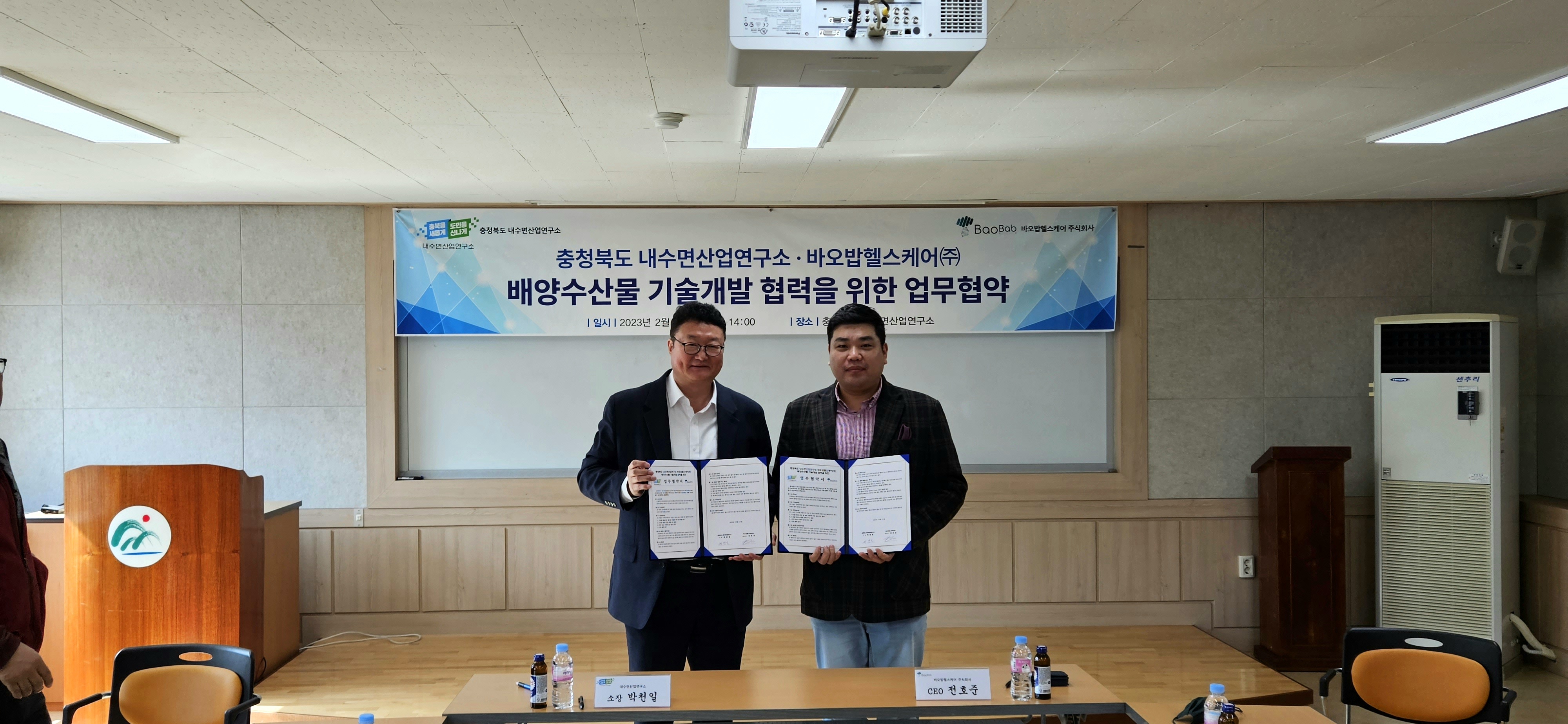 충청북도 내수면산업연구소-바오밥헬스케어(주) 간 연어 양식산업화를 위한 연구개발 업무 협약 체결