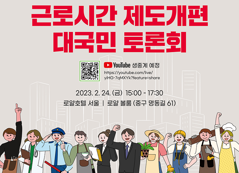고용노동부가 근로자의 삶의 질은 제고하고 기업의 혁신·성장을 지원하는 ‘근로시간 제도 개편’ 추진과 관련해 대국민 토론회를 24일 개최했다.