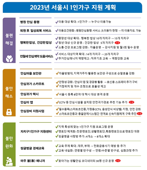 서울시가 나혼자 사는 1인가구가 맞닥뜨리는 현실적인 어려움 해소를 위해 보다 탄탄한 공적지원체계 구축에 나선다.
