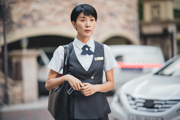 차기작 <종이달>에 이목이 집중되는 가운데 고급스러움을 풍기는 실내에서 단정하게 차려 입은 모습과 은행 유니폼을 입은 상반된 분위기의 스틸을 공개했다.