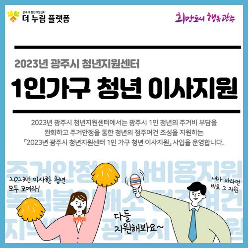 광주시 청년지원센터는 청년의 주거비 부담을 완화하고 주거 안정과 정주 여건 조성을 위해 오는 3월부터 '1인 청년 가구 이사지원' 사업을 시행한다고 27일 밝혔다.