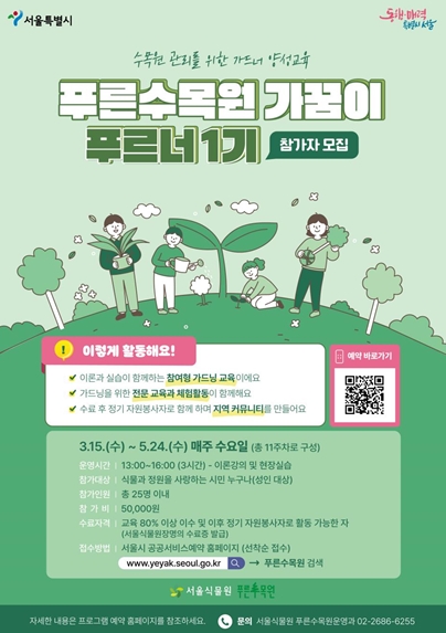 서울특별시 등록 제1호 공립수목원인 푸른수목원에 대한 시민 관심 향상과 자원봉사활동의 전문성 강화를 위해 추진되며, 수목원을 사랑하는 시민들과 함께 배우고 함께 가꾸며 자연과 함께하는 정원문화를 만들어갈 예정이다.