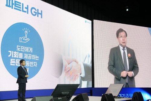 경기주택도시공사(이하 GH)는 27일 새 비전 '기회 파트너 GH'를 선포하고, 혁신전략을 도민에게 보고하는 '혁신·비전 보고회'를 개최했다.