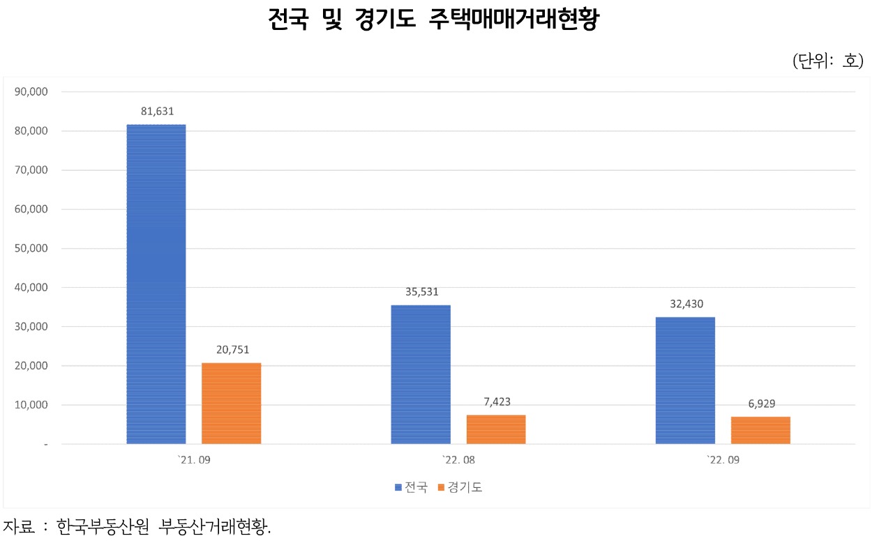 경기가 어려운 상황에서 지방세입에 큰 영향을 미치는 주택거래량을 분석해 보면 전국 주택 매매거래량은 3만 2천403건으로 전월(3만 5천531건) 대비 8.8% 감소했고, 전년 동월(8만 1천631건) 대비로는 60.3% 감소하는 등 거래 침체가 지속되고 있다. 경기도의 주택 매매거래량은 6천929건으로 전월(7천423건) 대비 6.7% 감소했으며, 전년 동월(2만 751건) 대비로는 66.6% 감소, 5년 평균 거래량 대비로는 68.3% 감소하는 등 전국과 비교해 높은 감소 추세를 보이고 있다.