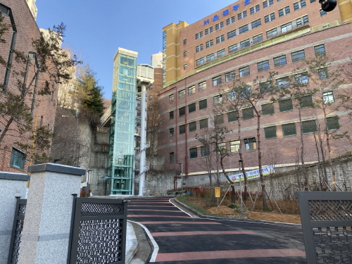 서울 금천구는 금동초교와 관악 벽산타운 아파트 5, 6단지를 잇는 수직형 엘리베이터와 보도교 설치를 완료하고 지난 27일 개통식을 개최했다.