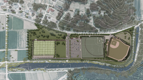 제2스포츠타운은 정식규격의 축구장 1면과 야구장 1면, 복합구장 1면, 부대시설 등으로 조성된다.