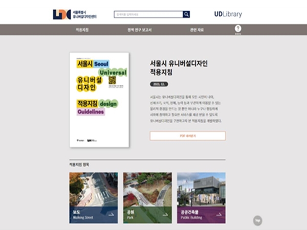 ‘서울시 유니버설디자인 적용지침 웹서비스’는 2022년 대한민국 공공디자인대상 사업부문 최우수상(문화체육관광부장관상)을 수상한 바 있으며, 서울시 유니버설디자인센터 ‘유니버설디자인 적용지침 누리집’을 통해 누구나 이용 및 다운로드가 가능하다.