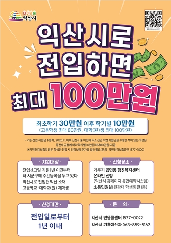 각종 혜택 중 익산으로 유학 온 타지역 학생들이 익산으로 주소를 옮기면 첫 학기 30만원, 이후 학기별로 10만원씩을 지급해 졸업 시까지 최대 100만원을 지원받는 주소전입 학생 지원금이 신입생들에게 가장 큰 관심을 모았다.