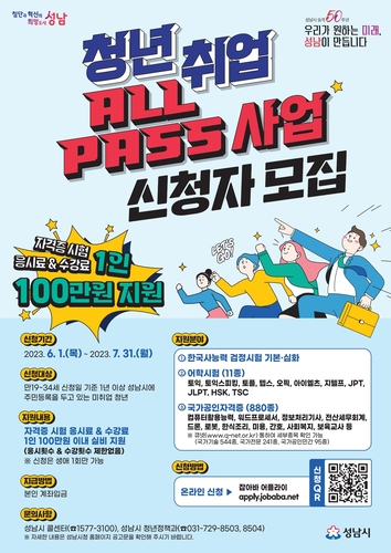 대상은 성남시에 1년 이상 거주한 만 19세 이상 34세 이하의 모든 미취업 청년이며, 올해 1월 1일 이후 시험 응시 또는 수강자가 해당한다.