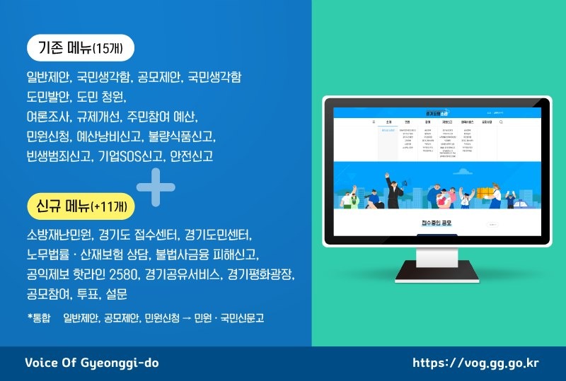 경기도가 도민참여 창구 플랫폼인 ‘경기도의 소리(vog.gg.go.kr)’를 도민의 참여 기회를 확대하는 방안으로 전면 개편했다고 3일 밝혔다.