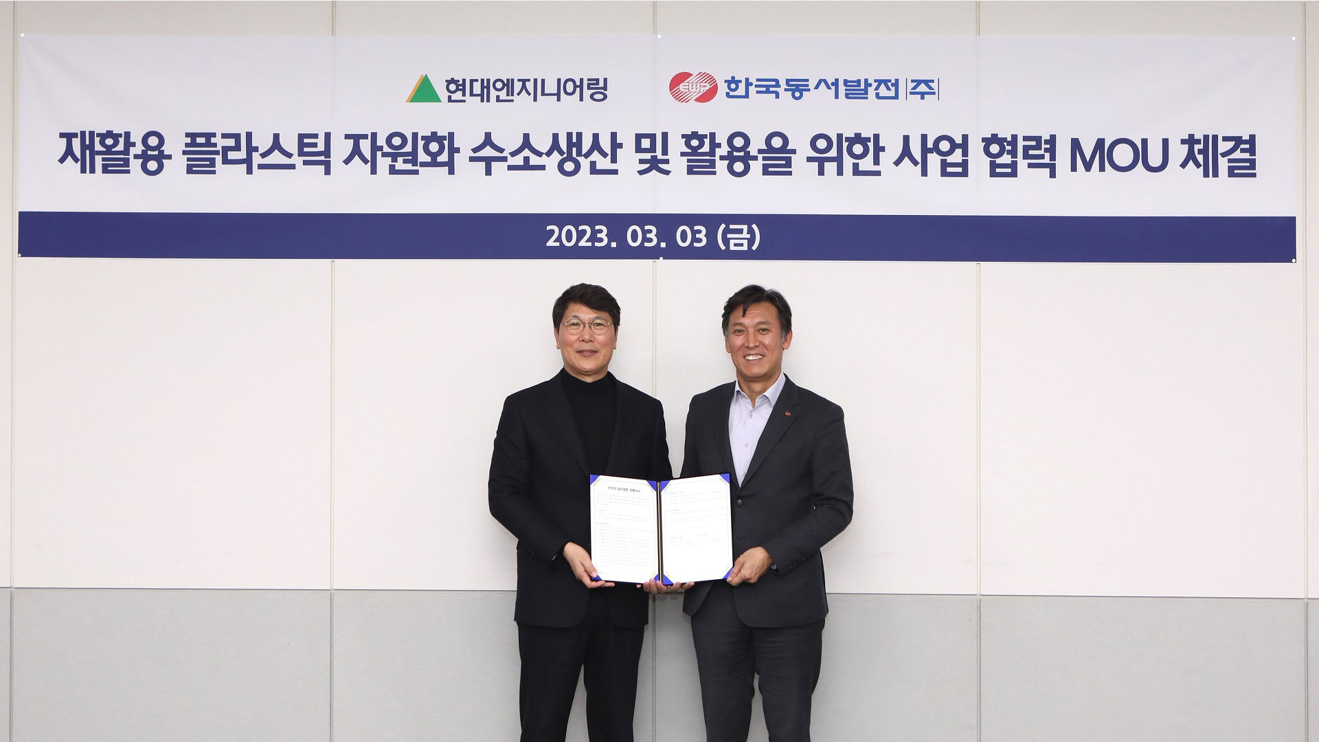 현대엔지니어링이 한국동서발전과 ‘재활용 플라스틱 자원화 통한 수소생산 및 수소 활용 연계사업 협력’을 위한 MOU를 체결했다고 3일(금) 밝혔다.