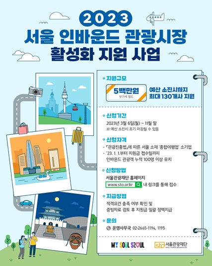 서울시가 코로나19 엔데믹을 맞아 국제관광 재개에 대비하는 인바운드(외국인의 국내여행) 여행사를 대상으로 고용지원금을 지급한다고 밝혔다. 지원금은 서울 소재 종합여행업 소기업 최대 130개 사를 대상으로 각 500만 원씩 총 7억여 원 규모다.