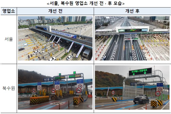 아울러, 하이패스 한 차로 당 처리용량이 최대 64%(1,100대/시간 →1,800대/시간) 증가되어 영업소 부근의 지정체가 크게 해소되고, 매년 30건 이상 발생하는 톨게이트 부근의 교통사고도 차로 폭 확장에 따라 크게 감소할 것으로 기대된다.