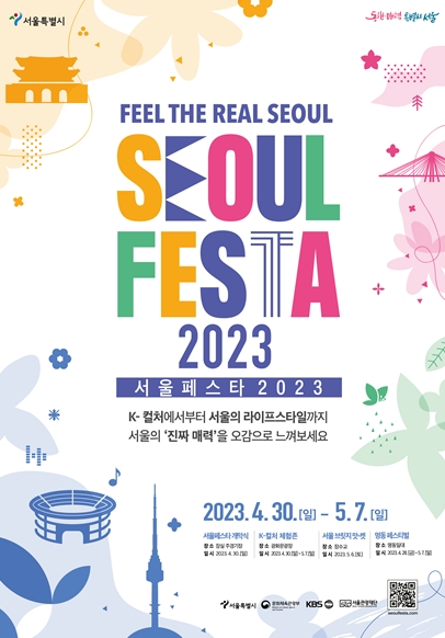 서울시는 2023년 본격적인 관광회복 시기, 코로나19로 침체된 서울관광 재도약의 동력이 될'서울페스타 2023(SEOUL FESTA 2023)'을 4월30일부터 5월7일까지 8일 간 광화문 광장 및 잠실종합운동장 등 서울 전역에서 개최한다고 밝혔다.
