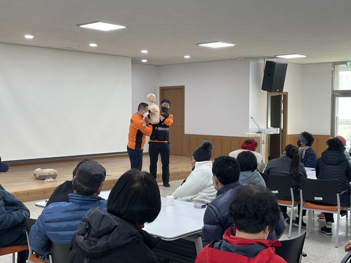 안전보건교육은 '중대재해처벌법의 이해'라는 주제로 일자리 사업에 참여하는 근로자들이 작업 도중 발생할 수 있는 각종 사건·사고, 안전 수칙 준수, 사고 가능성, 유사시 행동 사항 등에 대한 실제 사례교육이 진행됐고, 이어 중부소방서 대청 119지역대의 심폐소생술 교육이 이어졌다.