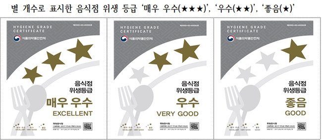 ▲ 별 개수로 표시한 음식점 위생 등급 ‘매우 우수(★★★)’, ‘우수(★★)’, ‘좋음(★)’ © 비전성남