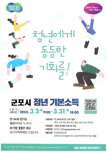 군포시가 청년들의 사회적 참여 촉진과 사회적 기본권 보장을 위해 지급하는 청년기본소득 1분기 신청을 오는 31일까지 받는다.