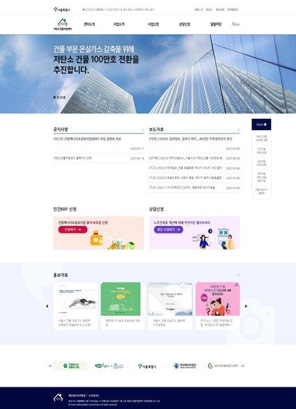 서울시는 건물 온실가스 감축 관련된 모든 정보를 한곳에서 편리하게 확인할 수 있는 ‘저탄소 건물 지원센터’ 누리집(홈페이지)을 운영한다.