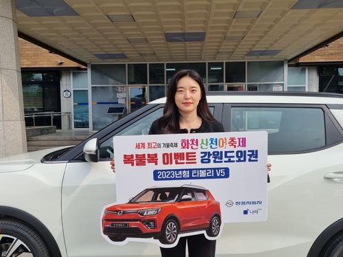 쌍용자동차가 후원하는 한국의 대표적 겨울 축제 '2023 화천 산천어 축제'의 현장 응모 이벤트에서 행운을 거머쥔 당첨자에게 티볼리 경품 전달식을 진행했다고 9일 밝혔다.