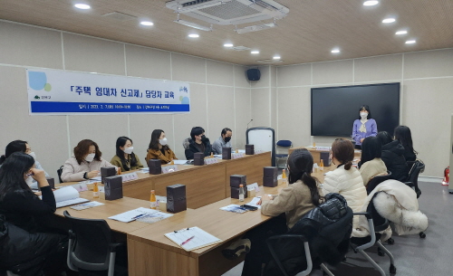 구는 지난 달 7일 동주민센터 주택임대차 신고 담당자 13명을 대상으로 정주권 확인제도 및 등기사항 확인 안내, 전세사기 예방 등의 내용이 포함된 교육과 질의·응답 시간을 가졌다.