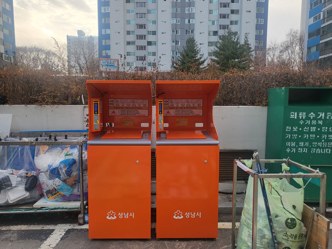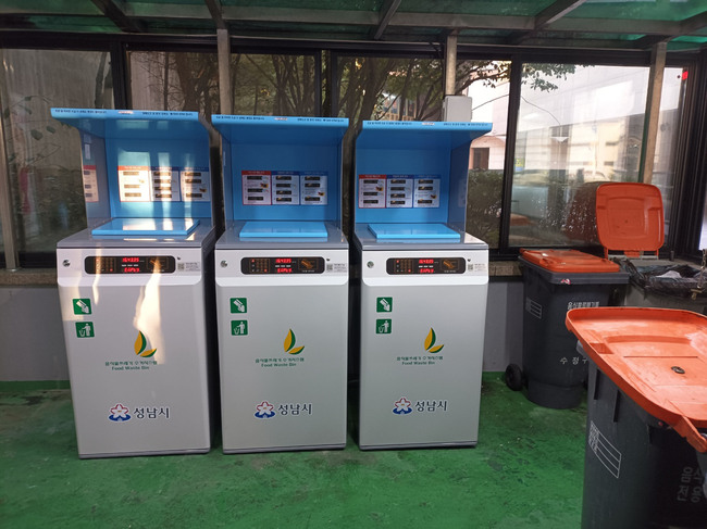 ▲ 성남 수내동 아파트단지에 설치된 전자태크(RFID) 방식의 음식물쓰레기 종량제 기기 © 비전성남