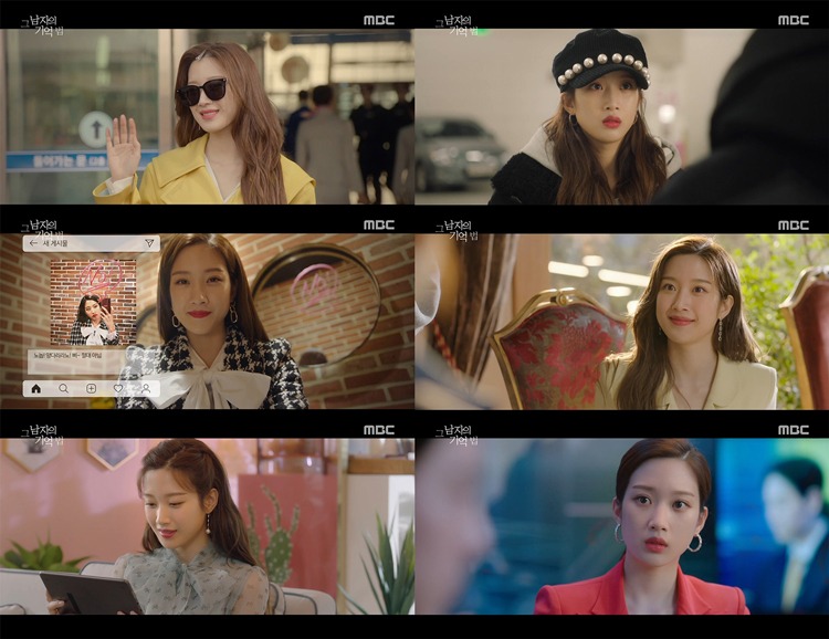 ‘그 남자의 기억법’ 1, 2회에서는 여하진의 인상 깊은 첫 등장 모습이 그려졌다. 여하진이 실수로 빼지않은 헤어 소품이 유행 패션 아이템이 되는가 하면, 그녀가 사용한 모든 화장품과 액세서리가 단번에 품절되는 등 ‘차세대 라이징스타’의 면모를 여과 없이 뽐냈다. 또 하루아침에 서광진(김선호 분), 주여민(로운 분) 두 사람과 이중 열애설에 휩싸이며 ‘이슈메이커’로서의 역할도 톡톡히 했다. 하지만 뉴스를 접한 하진은 당황하기는커녕 당차다 못해 당돌하고 쿨한 태도를 보이며 색다른 매력을 선사해 눈길을 끌었다.