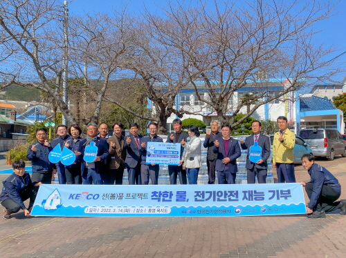 박지현 사장을 비롯한 공사 임직원들은 14일, 경남 통영 욕지도를 찾아 지역주민들에게 생수 11,100병(2L)을 직접 전달하고 도서 지역 전기안전을 위한 재능기부 활동을 펼쳤다.