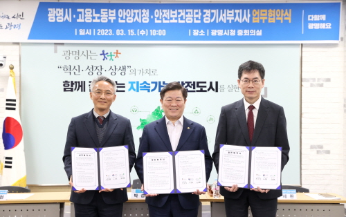 경기 광명시는 고용노동부 안양지청, 안전보건공단 경기서부지사와 중대 재해 예방을 위해 상시 협력체계를 구축한다.