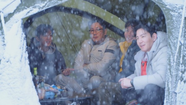 하얀 눈이 잔뜩 쌓인 캠핑지에서 오갈 데 없이 발이 묶인 네 사람이지만, 고생 속에 피어나는 배우들의 케미스트리가 사진 밖으로 고스란히 전해진다.