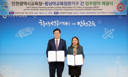 인천광역시교육청은 동남아교육장관기구(SEAMEO: Southeast Asia Minister of Education Organization)와 국제교육 협력을 위한 업무협약을 15일 체결했다.