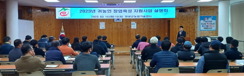 경남 창녕군은 지난 14일 농업기술센터 대회의실에서 '귀농인 창업육성 지원사업' 설명회를 열었다고 밝혔다.