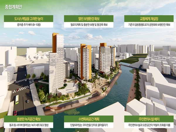 이번 프로젝트 신속통합기획가(MP)로 참여한 김정곤 건국대학교 교수는 “이 지역은 대표적인 ‘서울형 수변감성도시’로 거듭날 지역적 잠재력이 충분하다”며 “적막한 주거환경에 물이라는 감성 요소를 적극 활용함으로써 주민들이 일상생활에서 큰 변화를 체감할 수 있을 것”이라고 기대감을 드러내기도 했다.