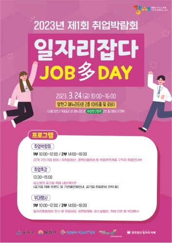 서울 강서구는 구직난으로 힘든 시기에 취업의 꿈을 이뤄줄 '2023년 제1회 강서구 취업박람회 일자리 잡다(JOB多)DAY'를 개최한다.